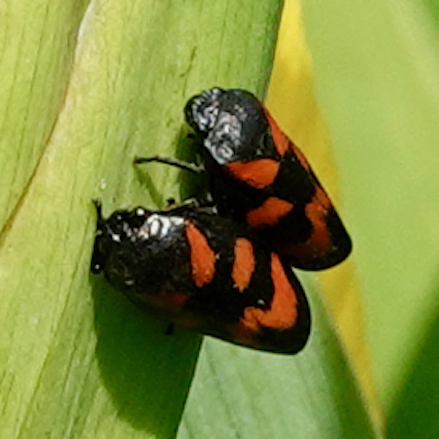One other insect that is now around is the Red-and-black Froghopper, a true bug that is unmistakable with its glossy black appearance with red markings on the back. They are most likely to be seen in woods and grassland on the stems of low-growing plants. The young of this species are rarely seen as they feed on the roots of various plants, but the adults are easy to spot feeding by sucking juices from grass and other plants. When it comes to getting around, these froghoppers are multi-talented – they can fly strongly, walk at a leisurely pace or, most spectacularly, leap powerfully into the air as their back legs extend fully in less than a millisecond.
